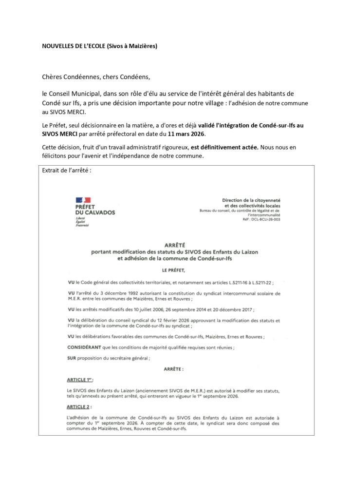 Pour accéder à l’arrêté préfectoral cliquer ICI